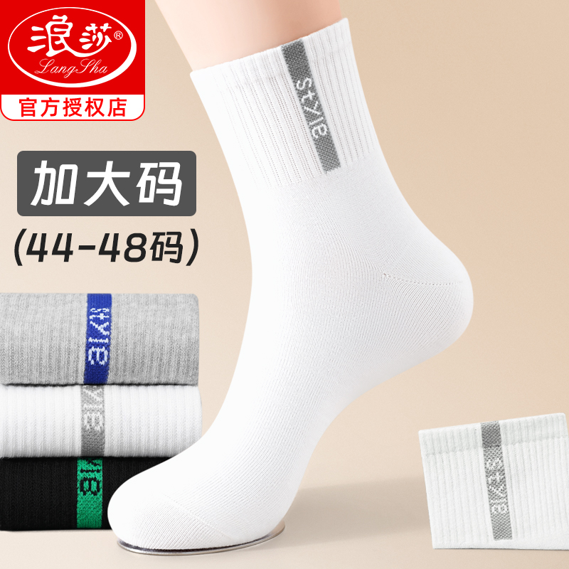纯棉防臭加肥44 春秋季 48宽松口中筒运动袜男 袜子男款 浪莎加大码