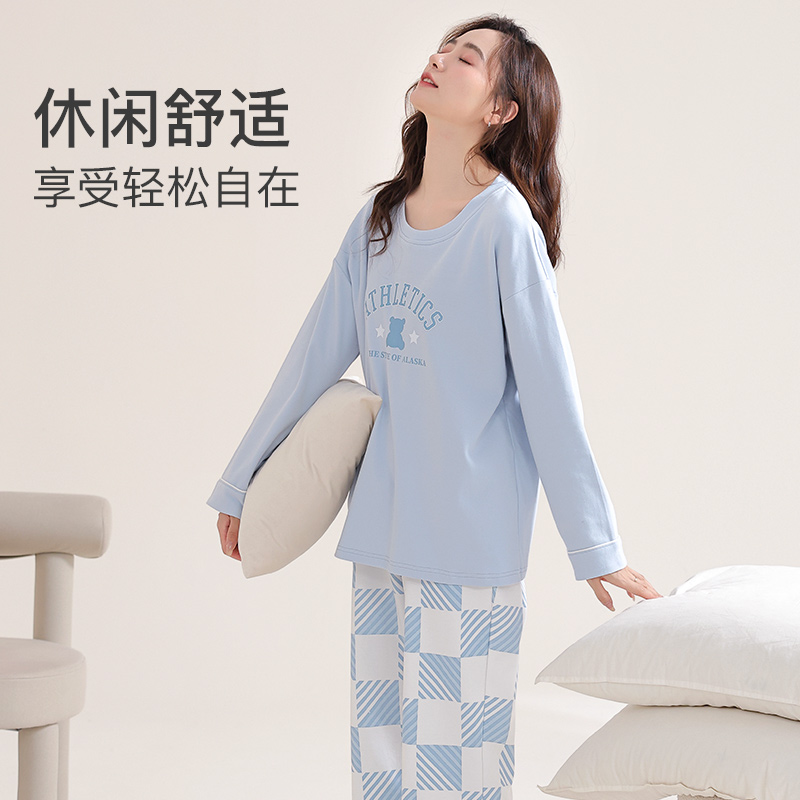 套装 家乐芬睡衣女士春秋季 家居服可外穿高级感加大码 纯棉长袖 秋款