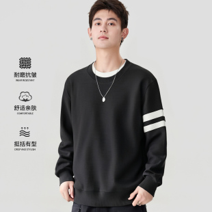 三角重磅长袖 班尼路S&K卫衣男秋季 打底衫 cleanfit男士 藏青色美式