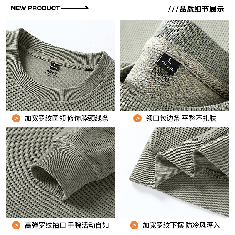 鸭鸭羊毛蚕丝华夫格圆领卫衣男女同款 休闲华夫格圆领套头卫衣外套