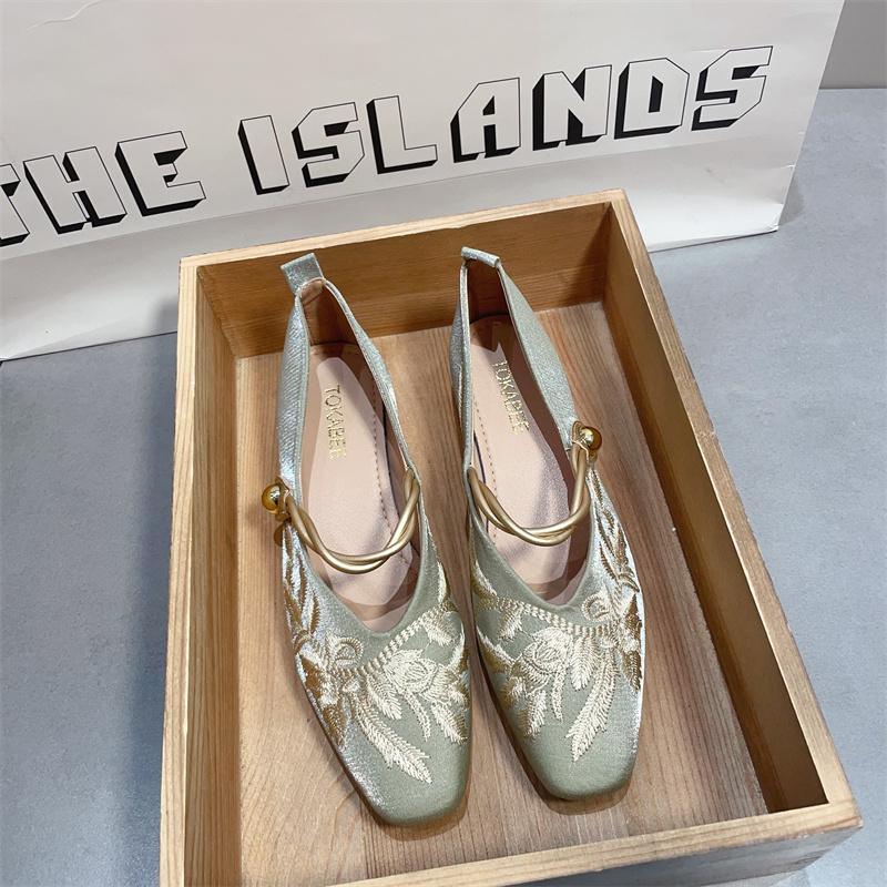 复古仙女风粗跟中低跟旗袍鞋 子女单鞋 红色婚鞋 优雅气质国风新中式