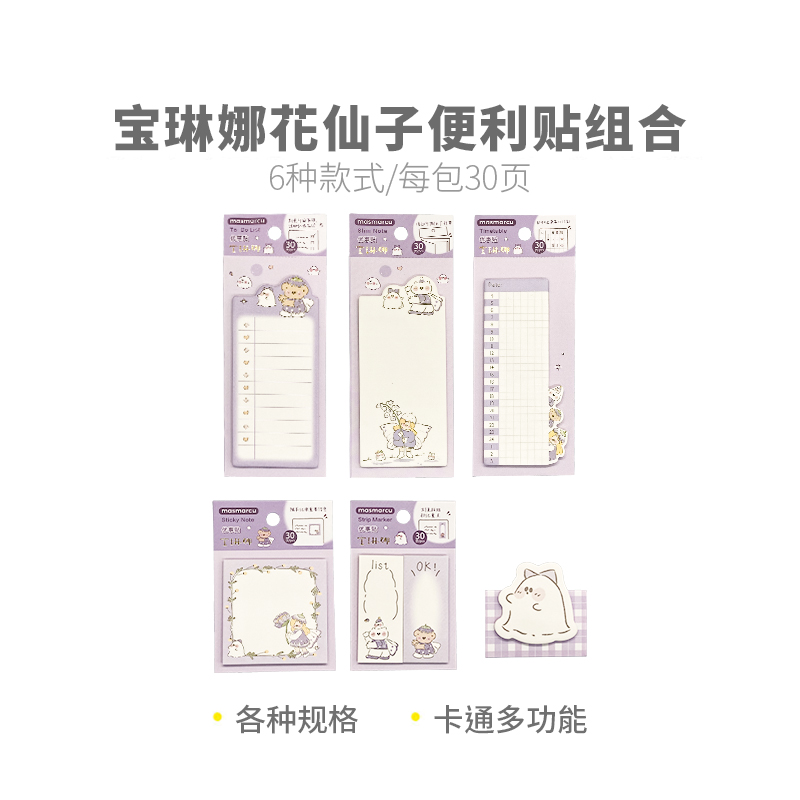 卡通创意优事贴中小学生多功能空白列表计划本粘黏贴手账日记笔记记录文具 便利贴组合6款 晨光 宝琳娜花仙子