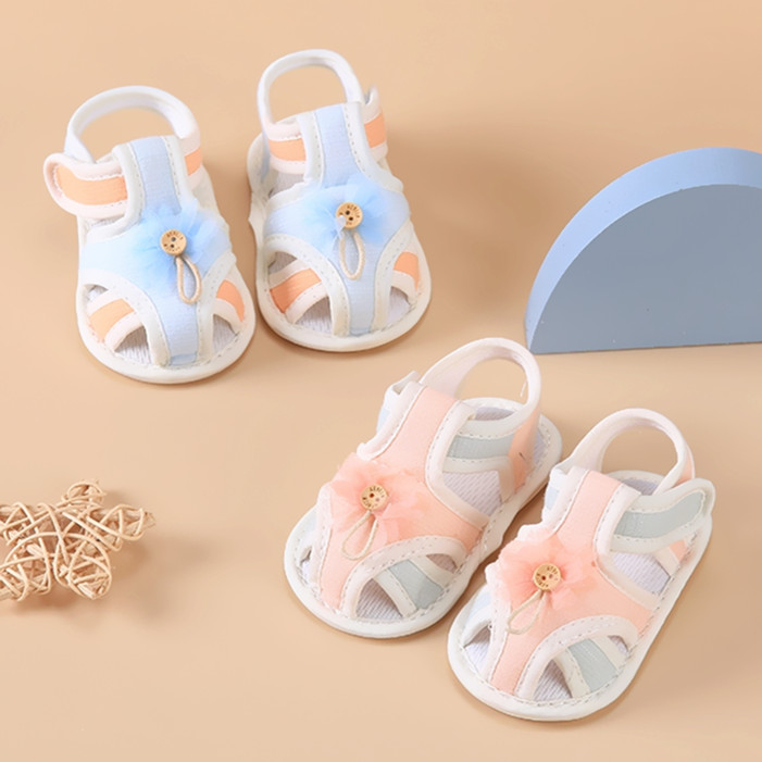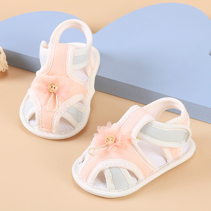 女宝宝甜美牛筋底软底防滑不掉步前布鞋 护脚凉鞋 子 新生婴儿鞋 夏季