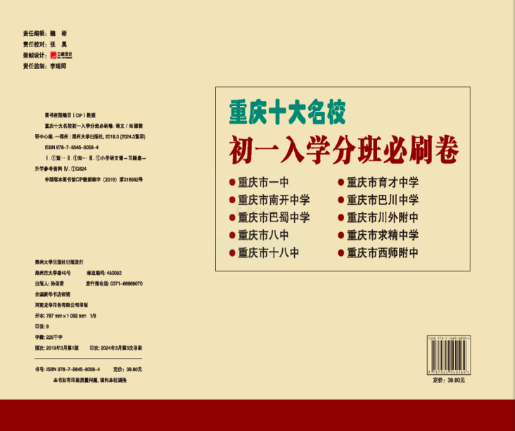 2025重庆十大名校初一入学分班必刷卷 重庆七龙珠小升初真题奥数重庆一三八中育才 语文数学五六年级适用小学升学名校联盟毕业试卷