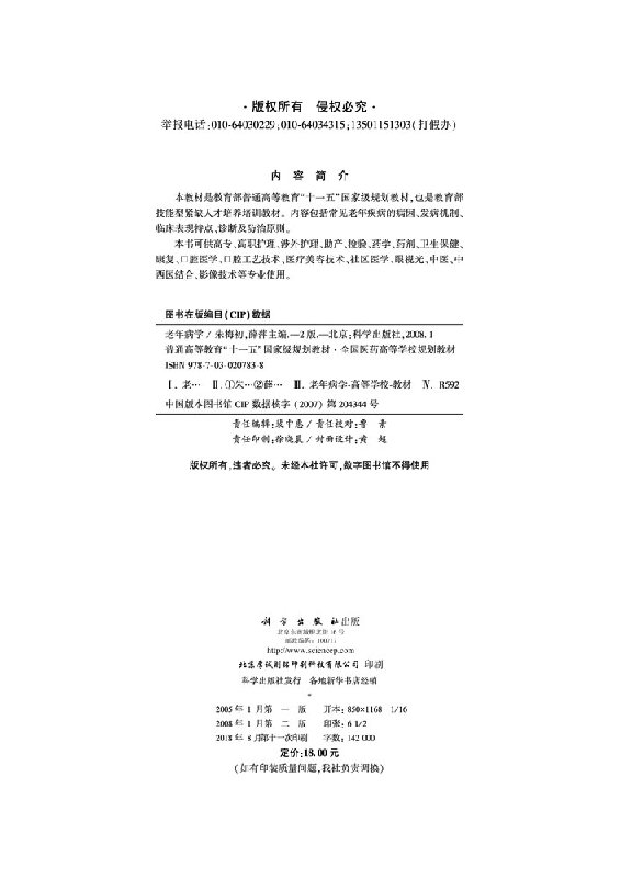 朱梅初 高职高专 薛萍 9787030207838 社 老年病学 科学出版 第二版