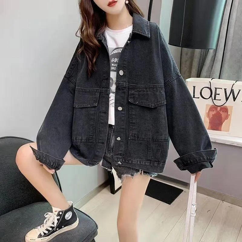 洋气刺绣夹克学生上衣 宽松百搭2023春秋季 牛仔外套女网红短款 韩版