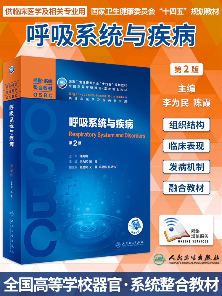 习题集陈霞人卫本科临床十四五规划教材器官系统整合教材OSBC融合教材呼吸系统习题人民卫生出版 第二版 社 呼吸系统与疾病第2版 正版