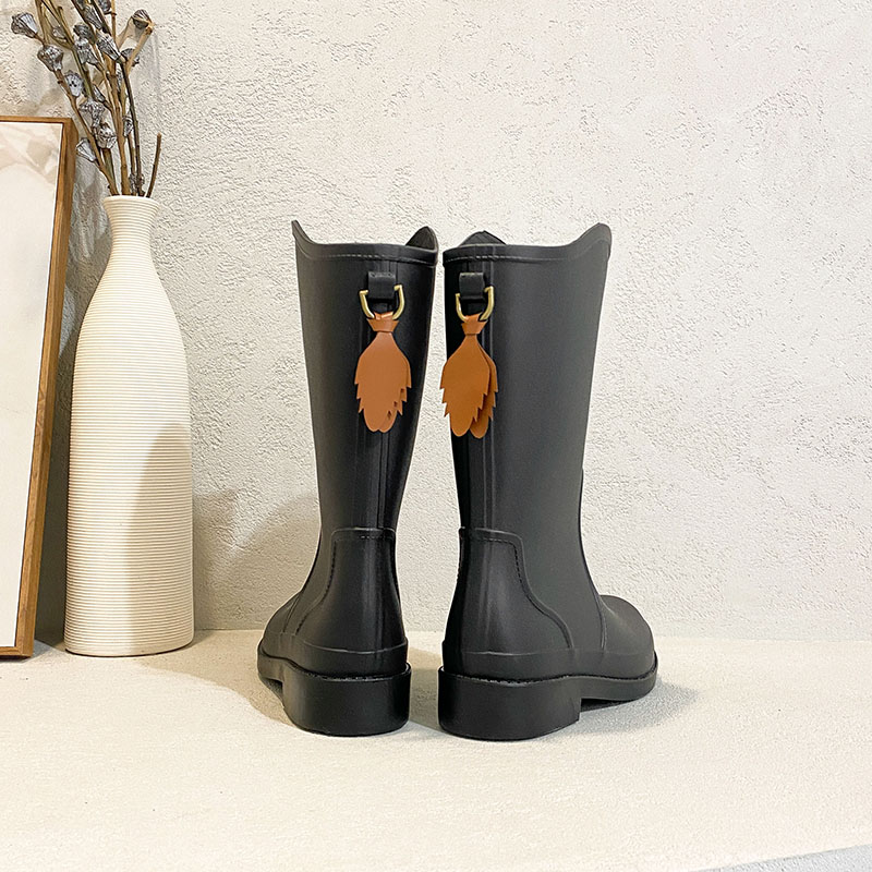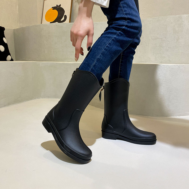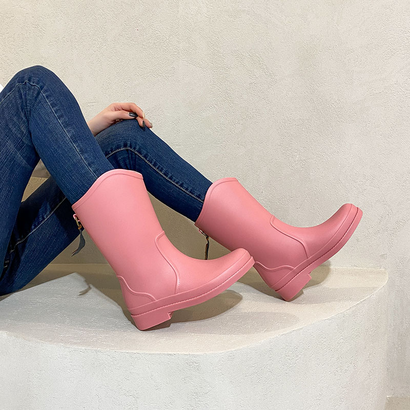 厚底套鞋 女高筒防滑耐磨雨靴外穿胶鞋 淑女英伦风中筒防水雨鞋 时尚
