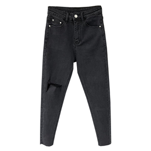 小个子加绒显瘦弹力马蹄裤 女春秋季 黑色高腰微喇牛仔裤 赵露思同款