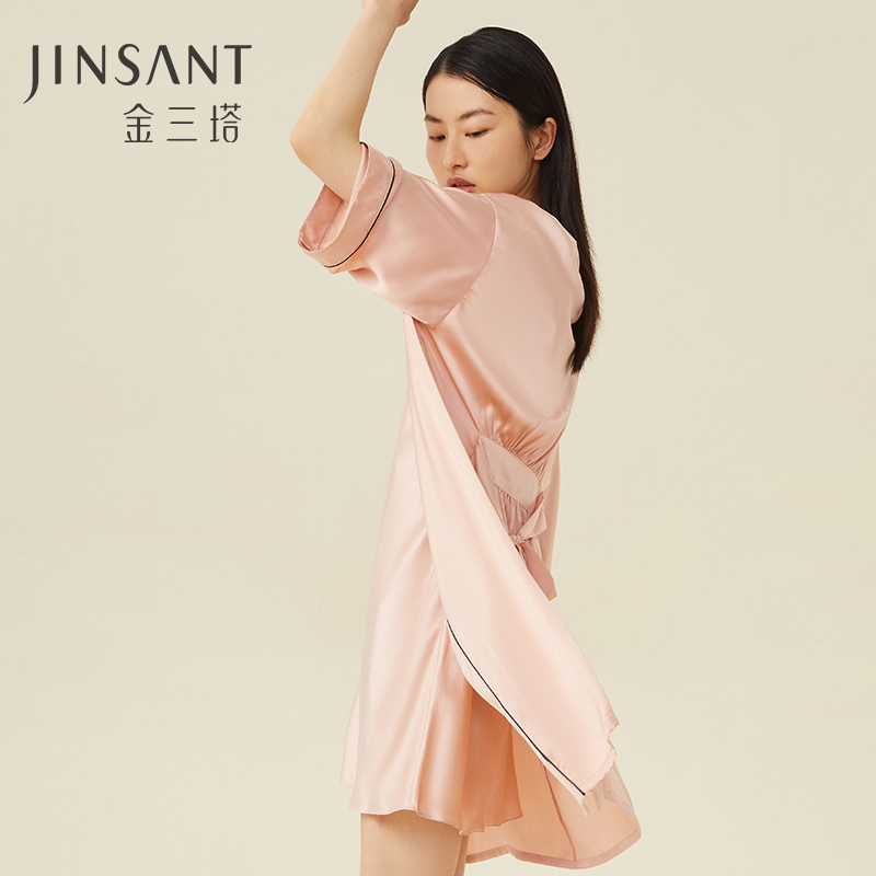 金三塔真丝睡衣女100%桑蚕丝简约红色婚庆新娘伴娘结婚晨袍家居服