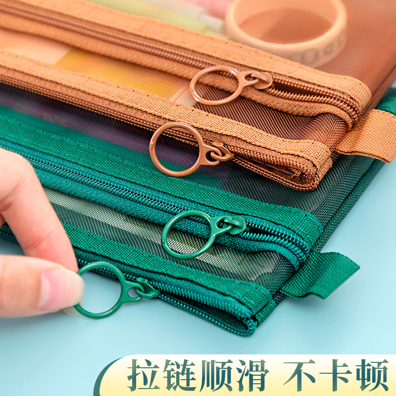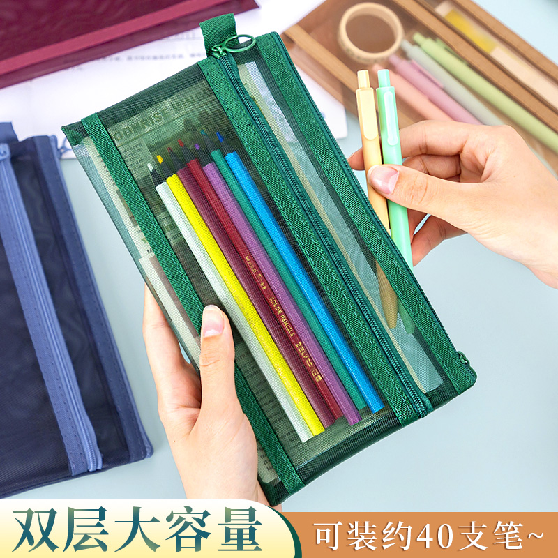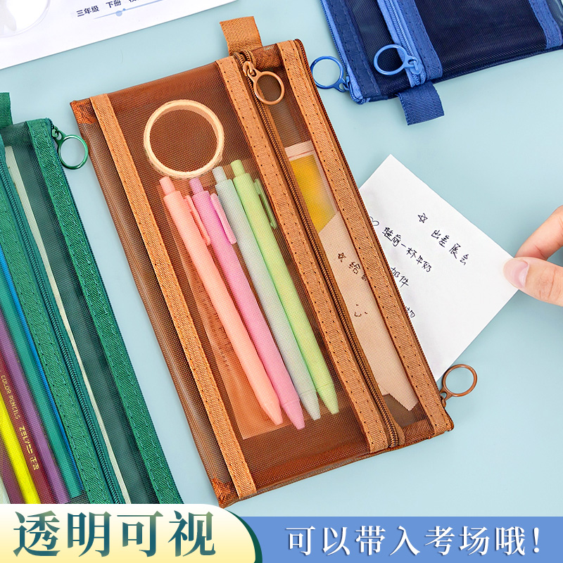 复古色铅笔笔袋尼龙ins风韩国透明网纱袋大容量男女小清新学生初中生女生高中生创意卷笔袋网红学生考试专用