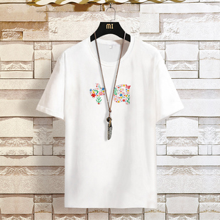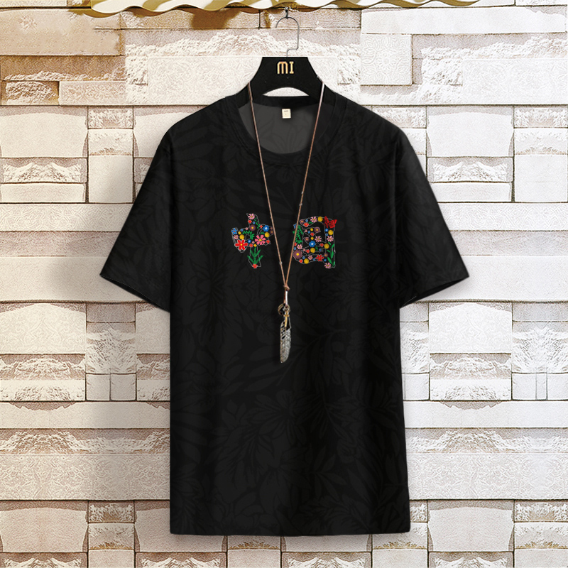 打底半截袖 爱国衣服中国t恤男短袖 修身 情侣装 黑色tee 潮牌超火韩版
