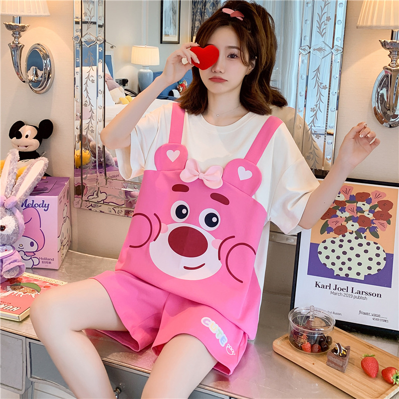 家居服套装 可外穿睡衣夏天女款 纯棉网红风小个子短袖 2025新款 夏季