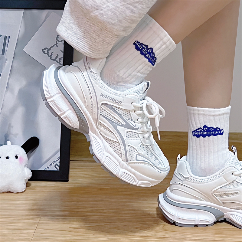 透气轻便运动鞋 回力老爹鞋 情侣厚底增高白色网面鞋 新款 女2024春季