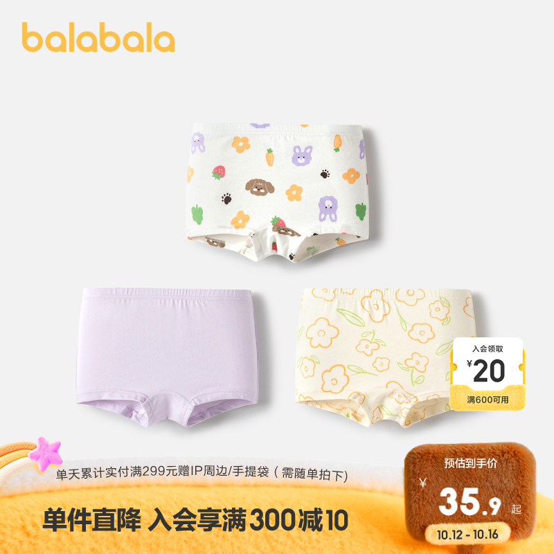 莫代尔少女纯棉女士内裤 3件 蕉内银皮301Color可爱印花女三角裤