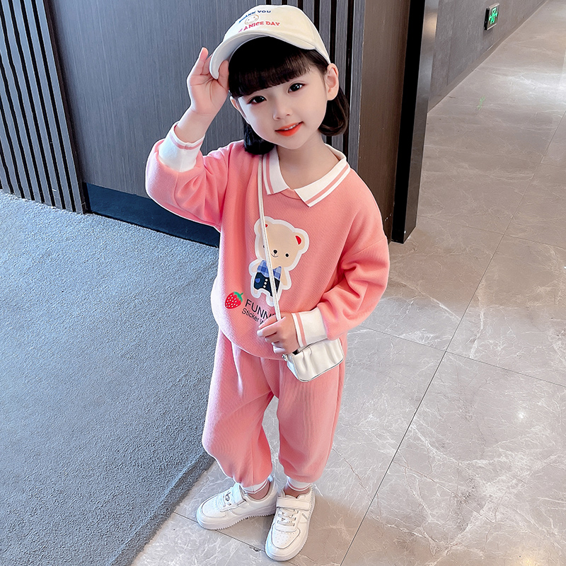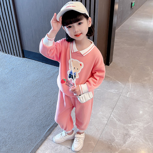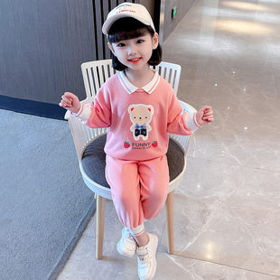 春装 衣服2025新款 女孩儿童衣服 春季 女童卫衣女宝宝小熊春秋套装