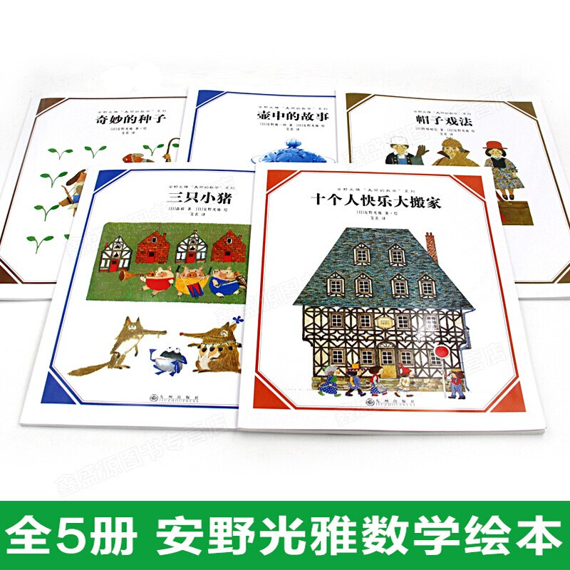 数学系列全套5册一年级二年级数学启蒙绘本 安野光雅美丽 三只小猪 绘本十个人快乐大搬家3 10岁儿童数学思维训练 全5册