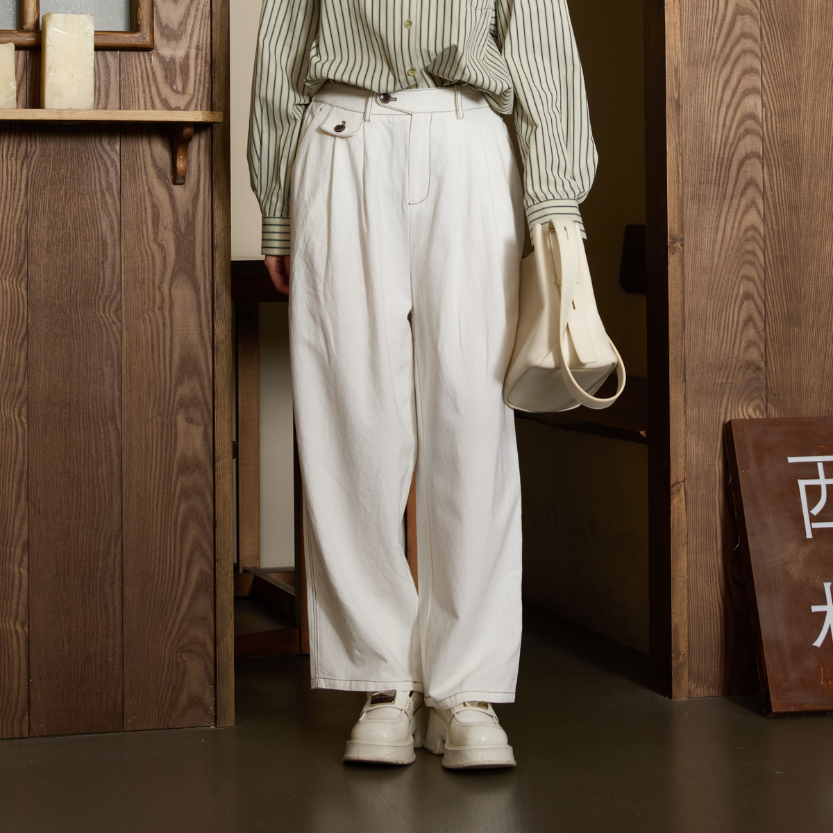 文艺明线结构感裤 新款 子HA9301001 女百搭春装 西町村屋宽松哈伦裤