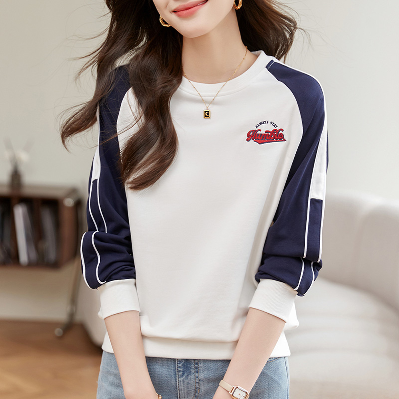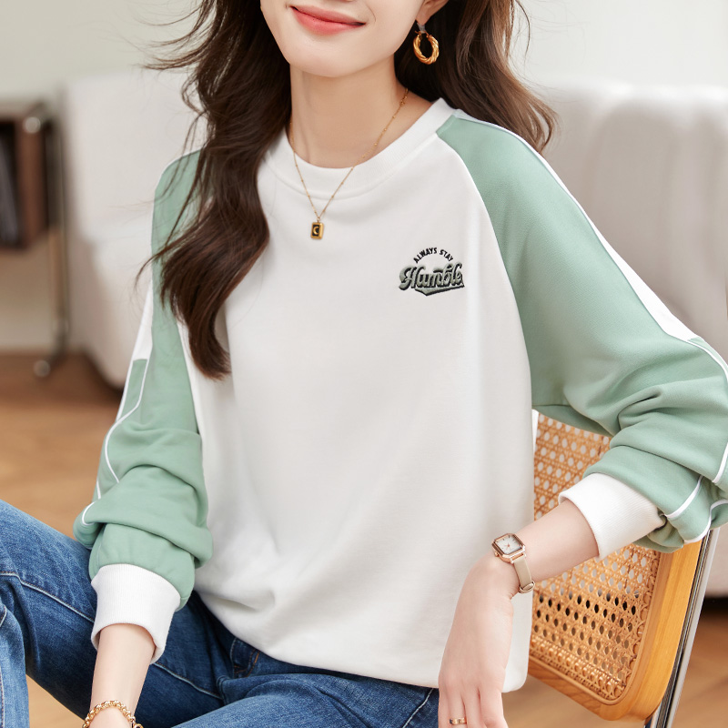 洋气女装 早秋爆款 撞色插肩上衣外套 2024年新款 圆领卫衣女春秋薄款