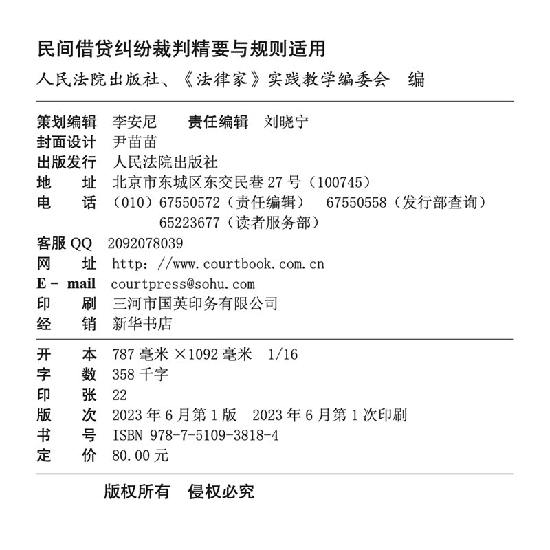 社 人民法院出版 9787510938184 民间借贷纠纷裁判精要与规则适用 2023新书