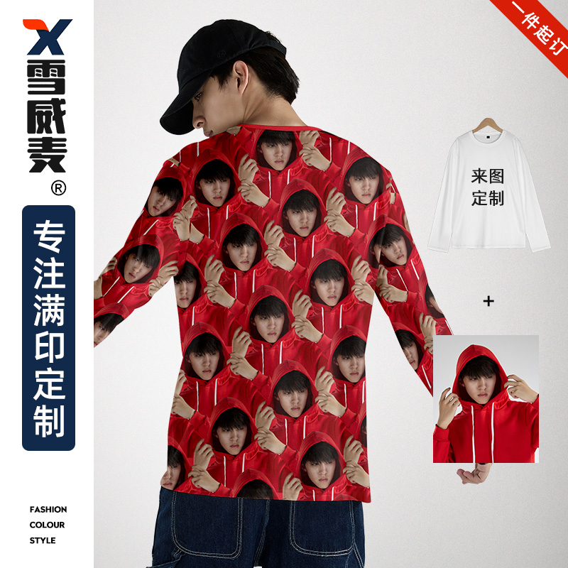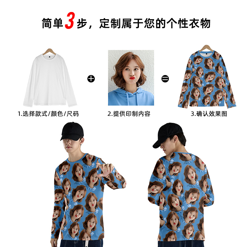 衣服定制来图定做长袖 t恤全幅满印照片人脸头像情侣恶搞笑抖音diy