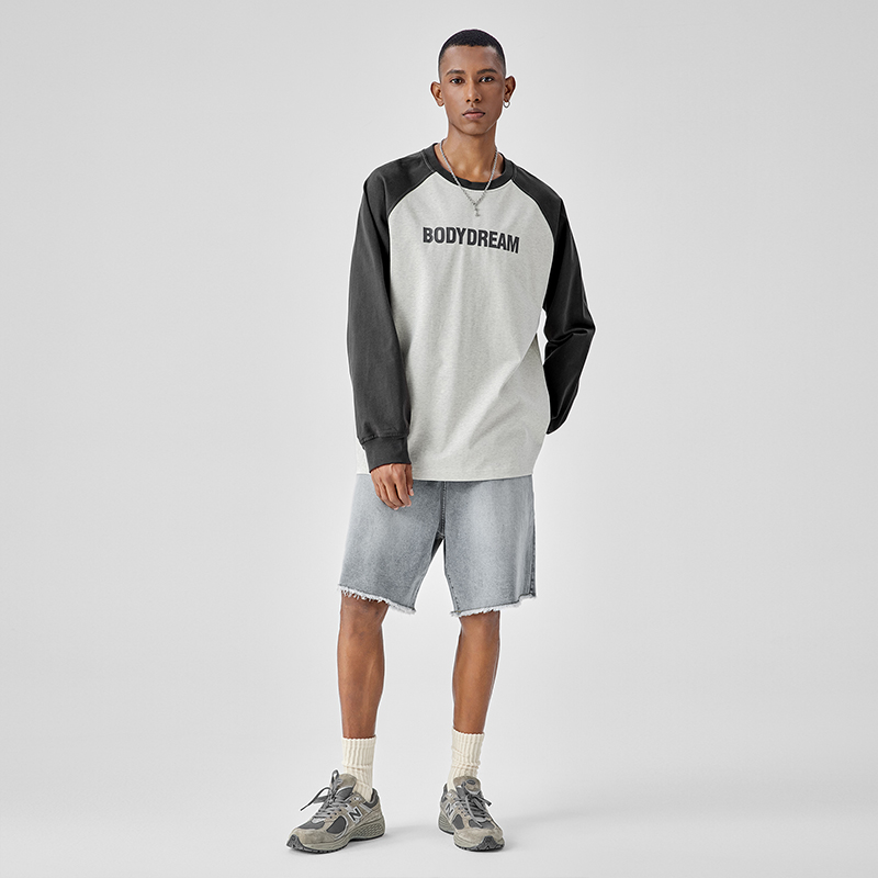 情侣卫衣纯棉重磅套头衫 BODYDREAM国潮插肩长袖 t恤男美式