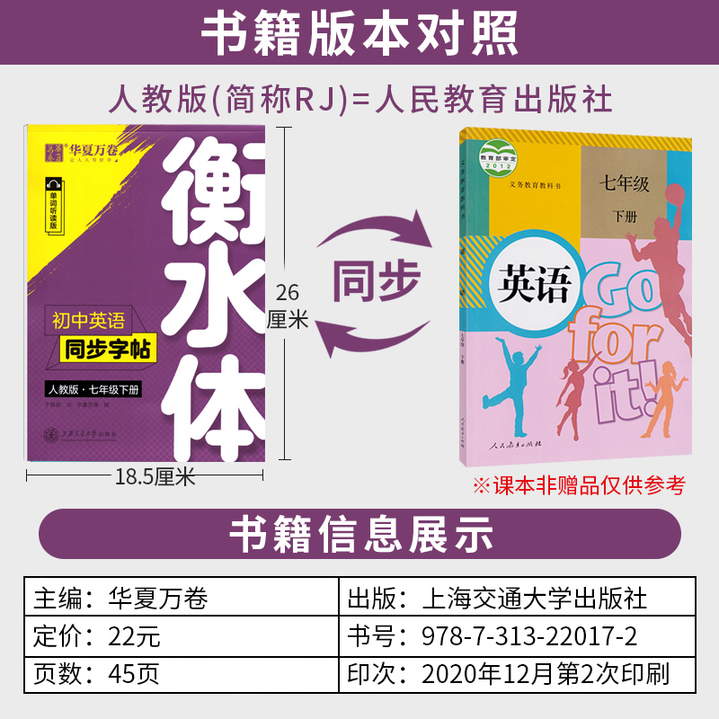 华夏万卷 教材于佩安手写衡水字体英文7年级专用练字帖应试规范字体临摹描写 初中衡水体英语同步字帖七年级初一下册英语字帖人教版