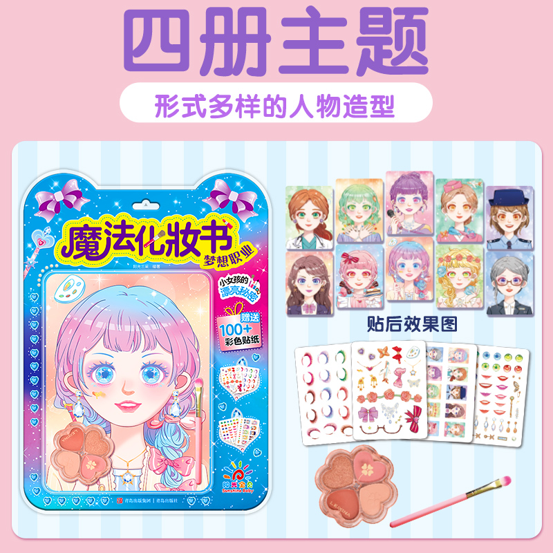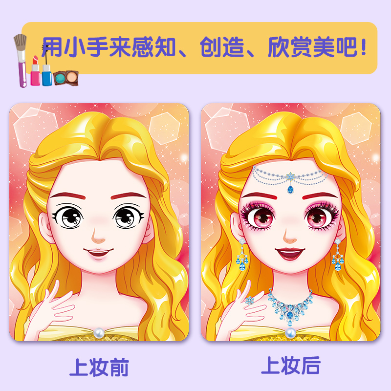 6岁益智玩具娃娃换装 化妆秀贴贴纸女孩儿童3 贴纸本子换穿衣服儿童礼物益智手工贴画美妆游戏 公主换装 魔法化妆书