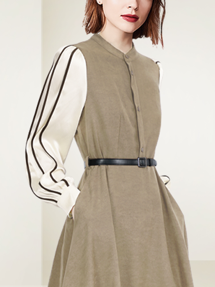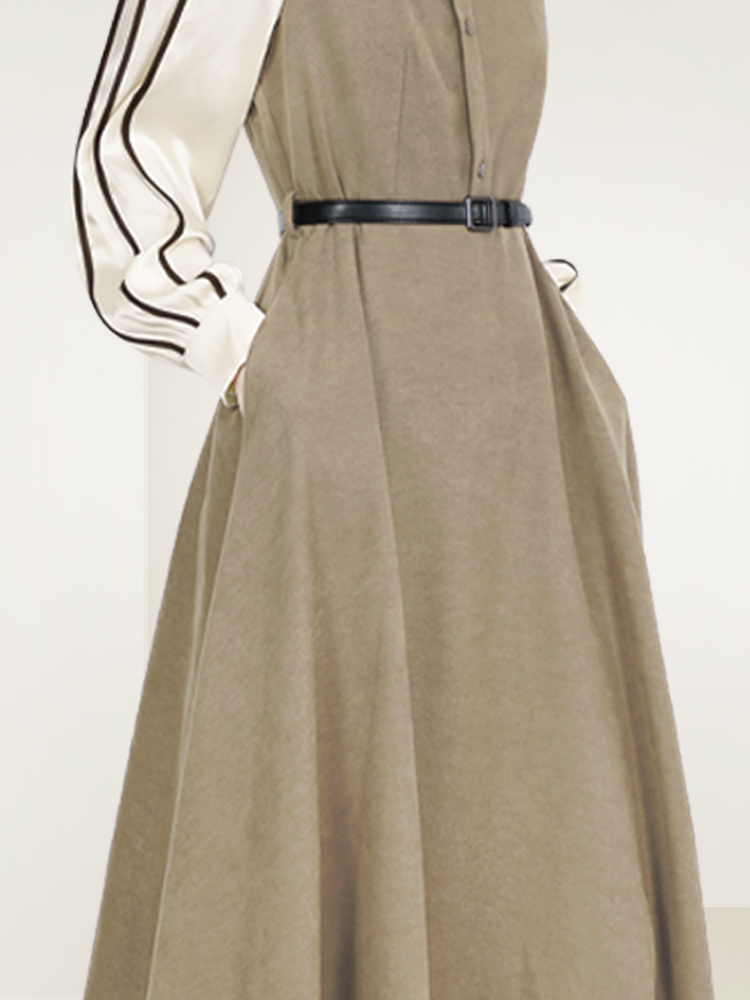 A字裙 收腰立领气质中长款 别致设计感法式 连衣裙女2025年秋冬新款