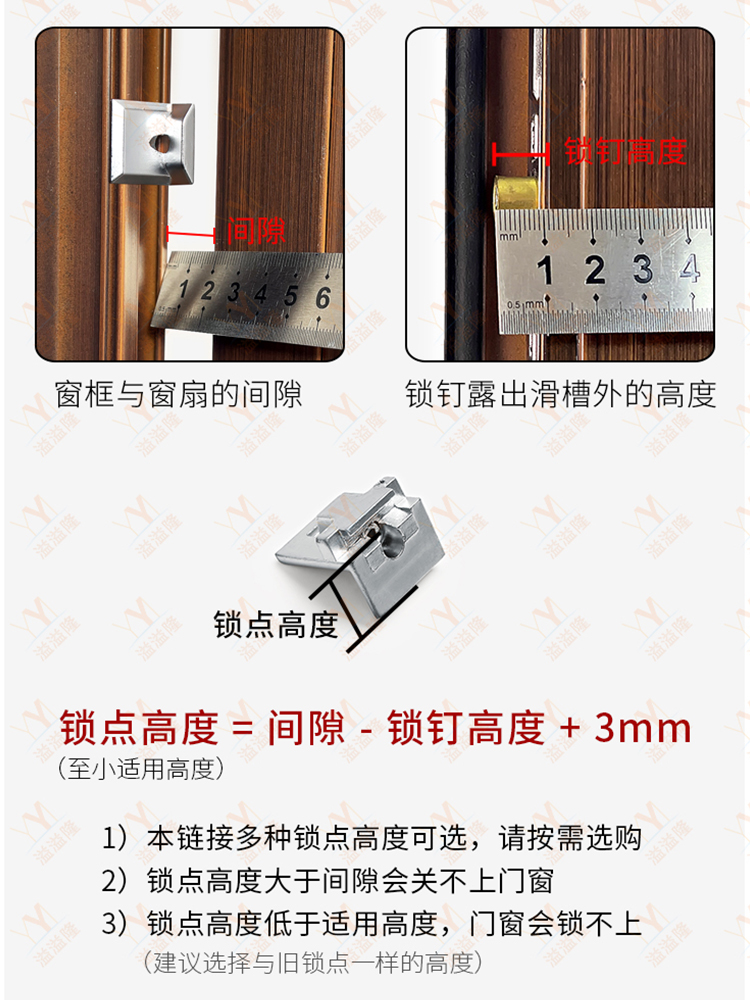 断桥铝窗户加高锁点铝合金窗锁扣欧标平开门窗传动杆可调锁块卡扣