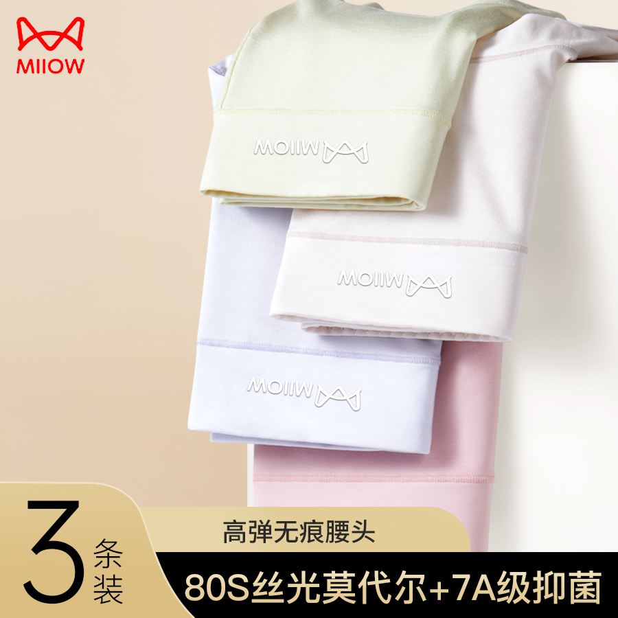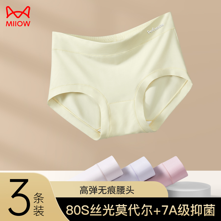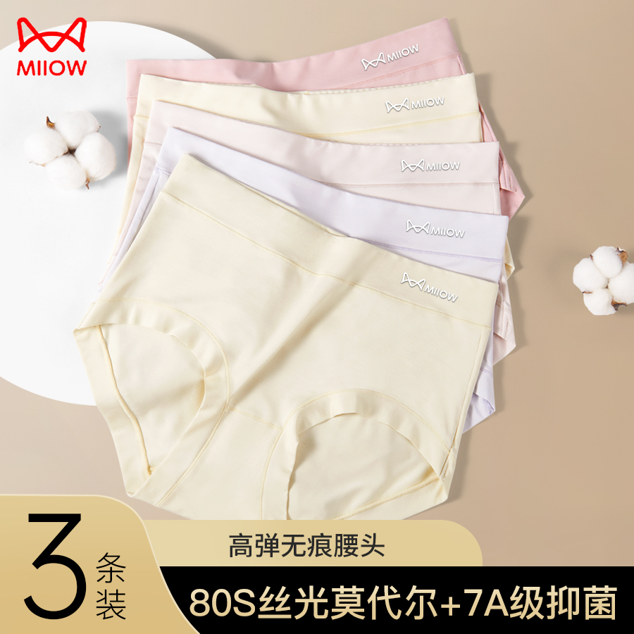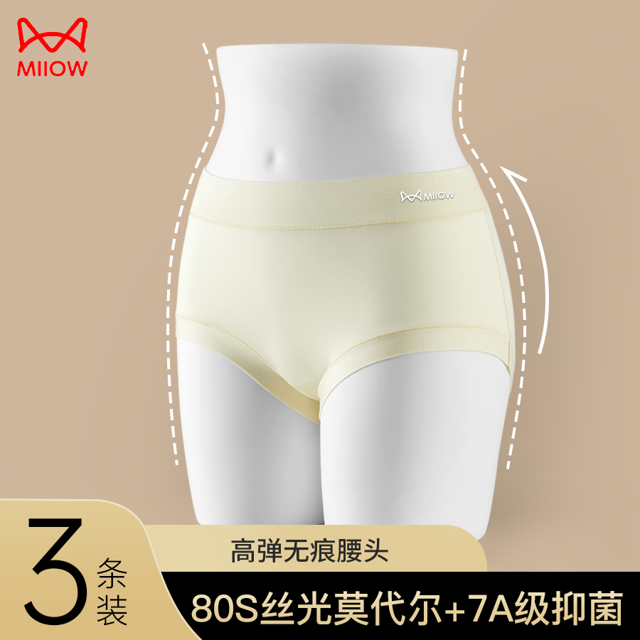 头2025新款 猫人纯棉女士内裤 7a级抗菌全棉加长裆中腰无痕三角短裤