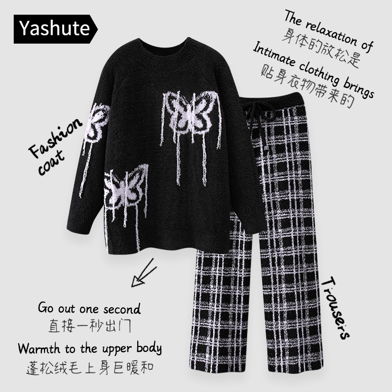 情侣睡衣 tbh野兽派家居都市野兽黑豹法兰绒家居服套装 可外穿冬季