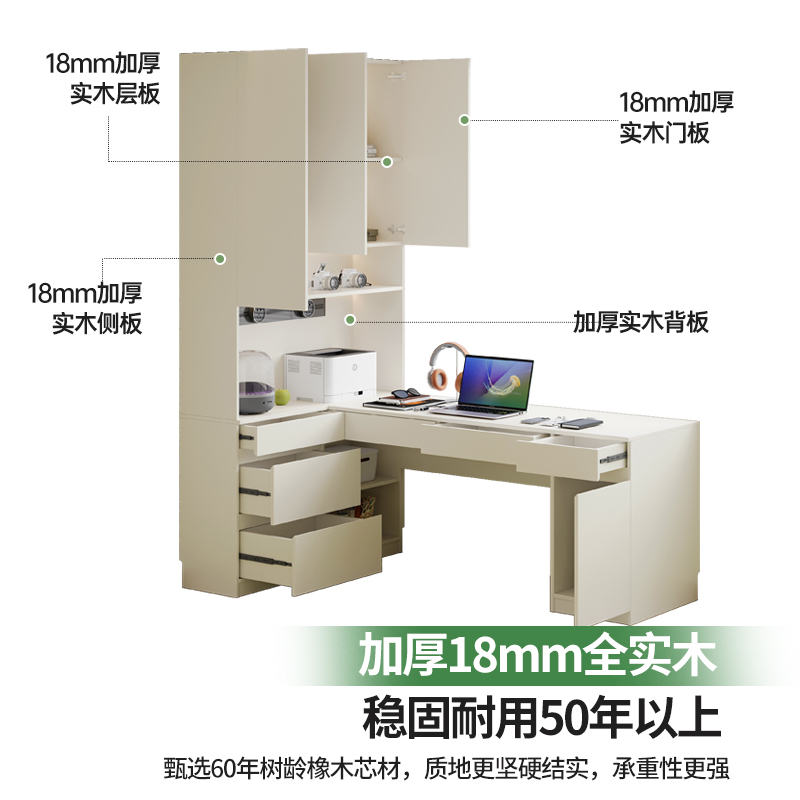 转角书柜电脑桌 书架学习桌一体储物柜桌子 儿童书桌连体组合衣柜