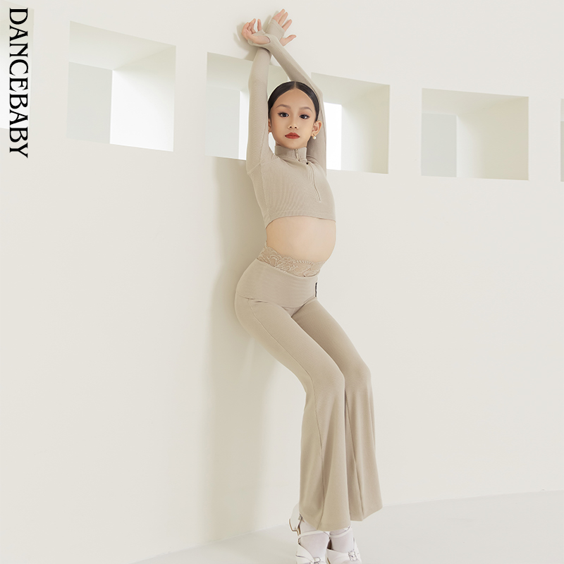 Dancebaby拉丁舞服装 子DAS809 练功舞蹈高级感春夏女童螺纹上衣裤