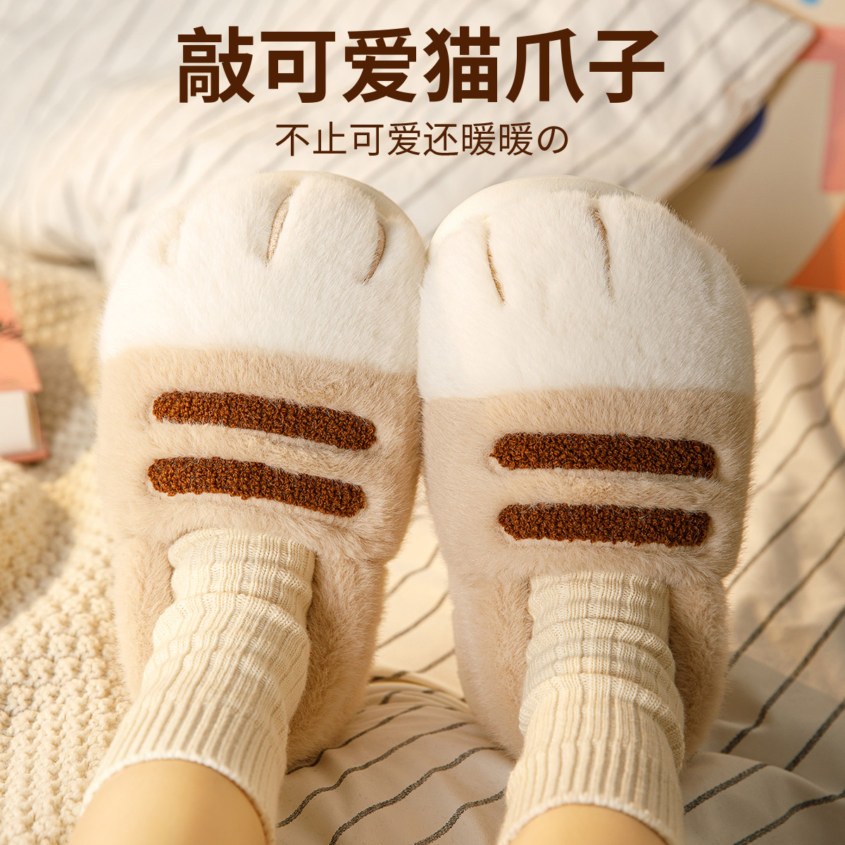 男冬天 可爱卡通包跟室内居家防滑毛绒绒情侣棉鞋 猫爪棉拖鞋 女冬季
