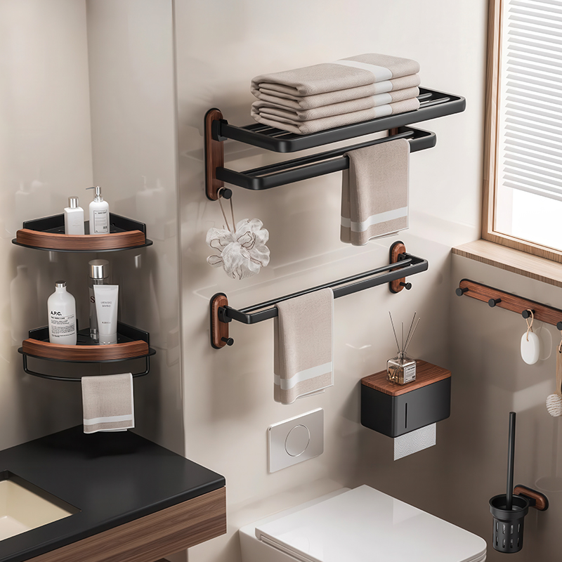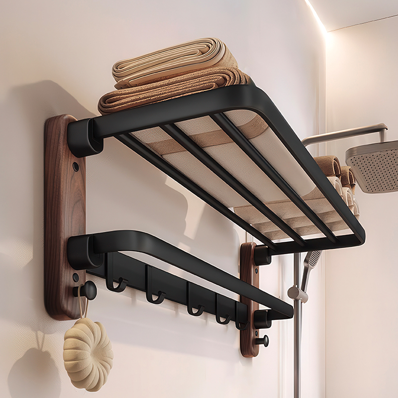 胡桃木毛巾架卫生间免打孔浴室置物架厕所挂架毛巾挂杆高端浴巾架