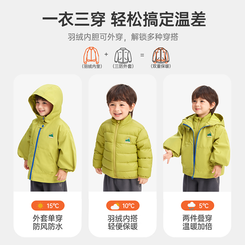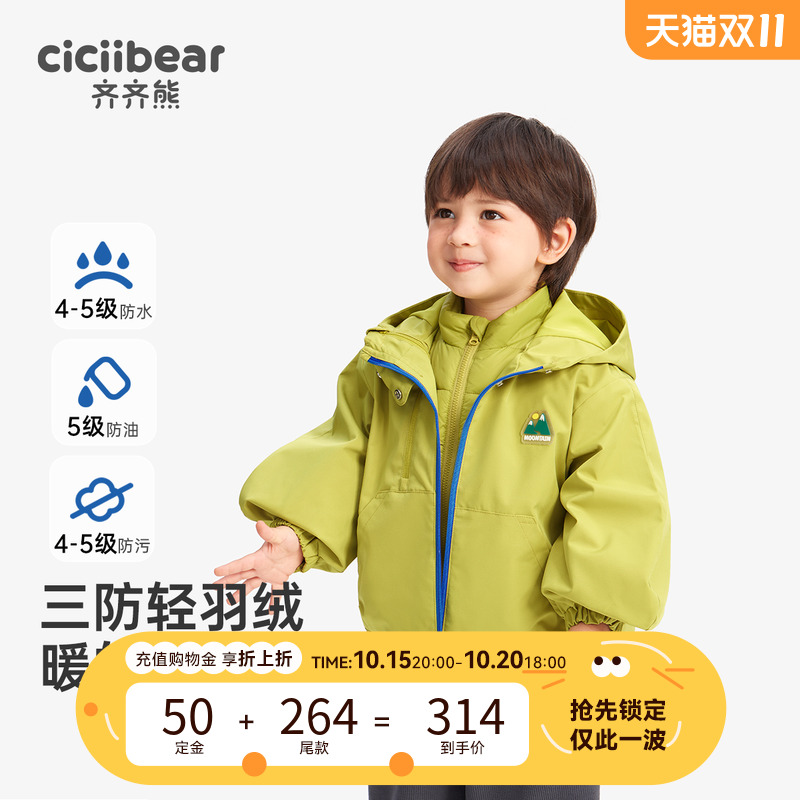 儿童三合一保暖 齐齐熊宝宝羽绒服男童冲锋外套冬装 预售抢先购