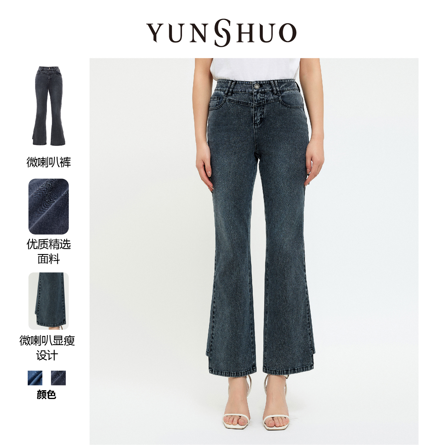 显瘦阔腿拖地喇叭裤 黑色百搭不贴腿微喇牛仔裤 高腰修身 款 子 女夏季