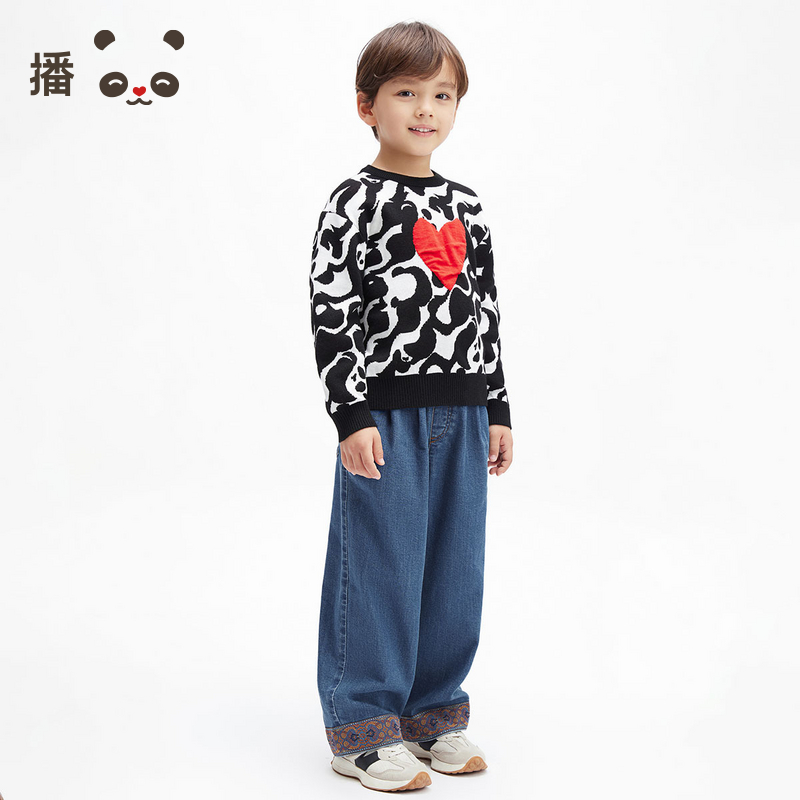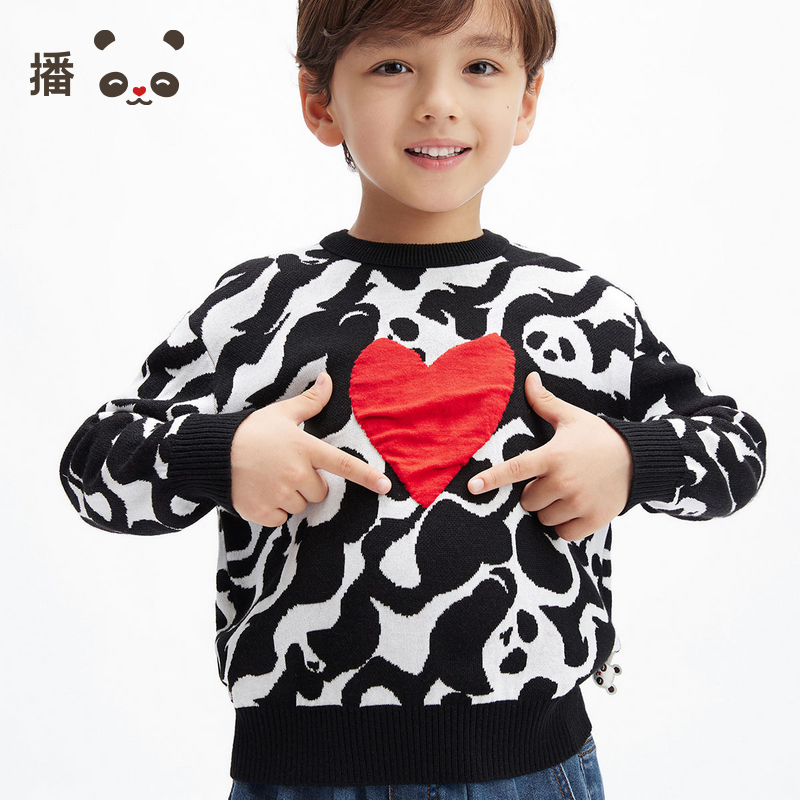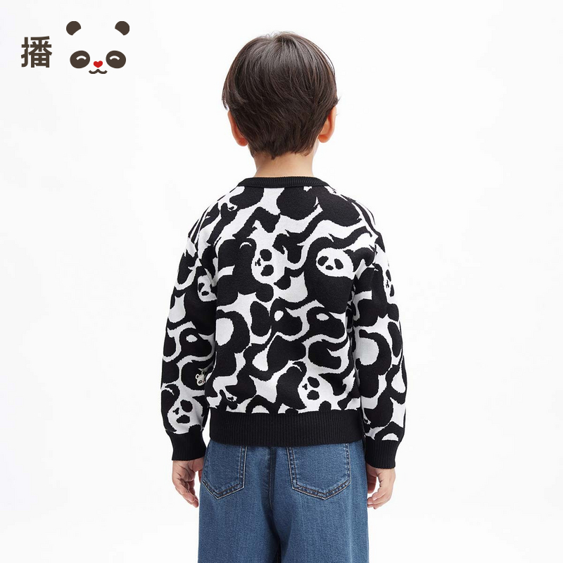 KES1SD0262 男女童上衣熊猫印花毛衫 播broadcute童装 2025春新款