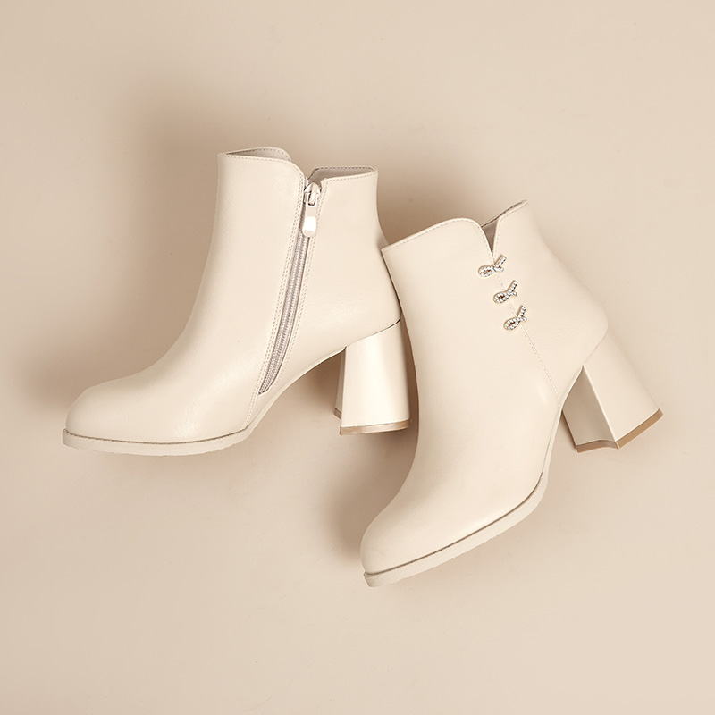 大东粗跟高跟短靴女2025新款 靴子黑色瘦瘦马丁靴 春秋加绒配大衣