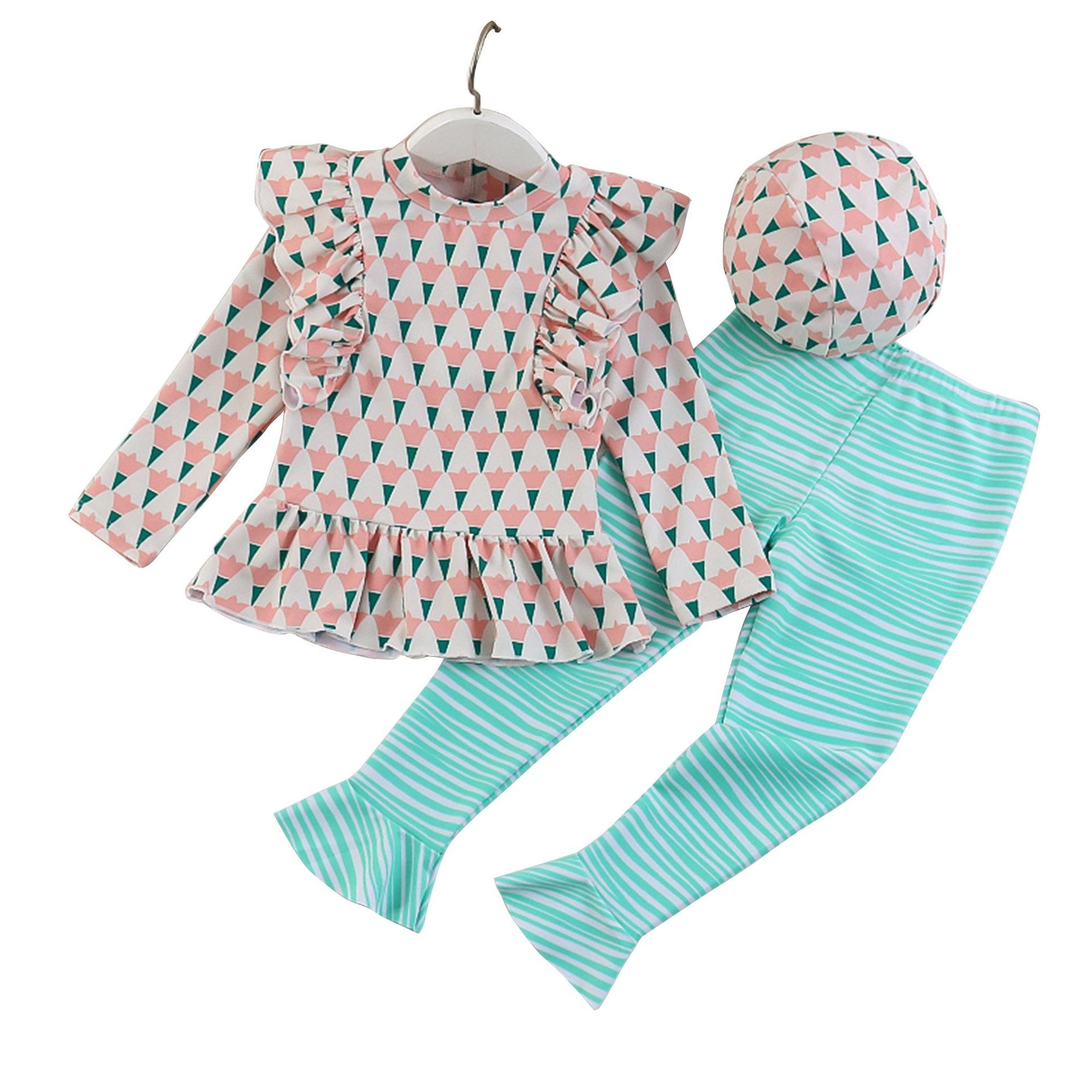 可爱卡通印花女孩分体防晒速干游泳衣 长裤 新款 儿童泳衣女童长袖