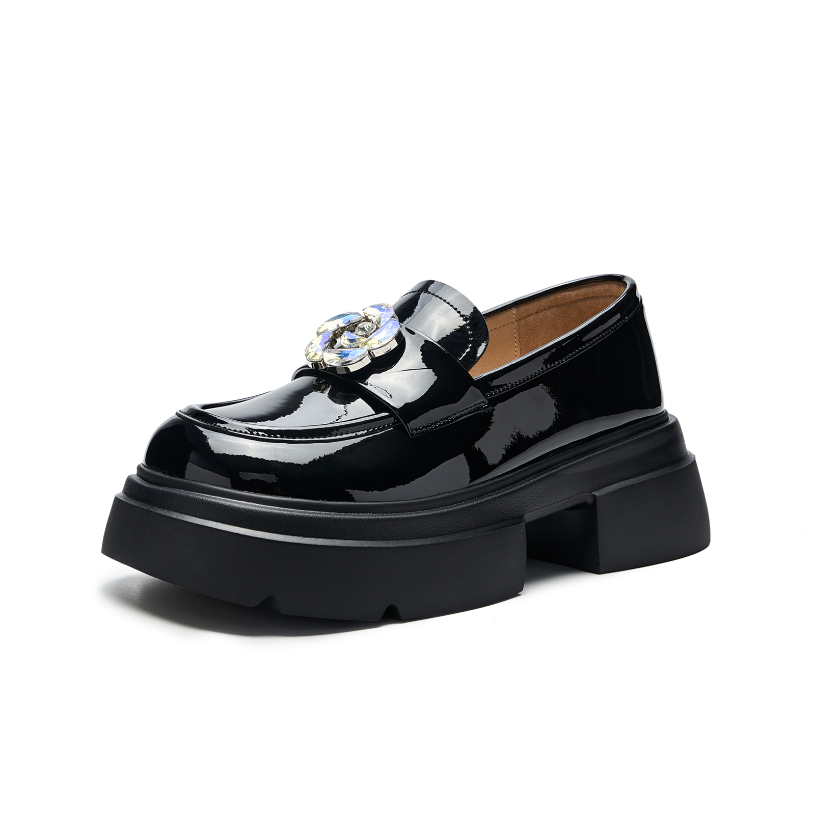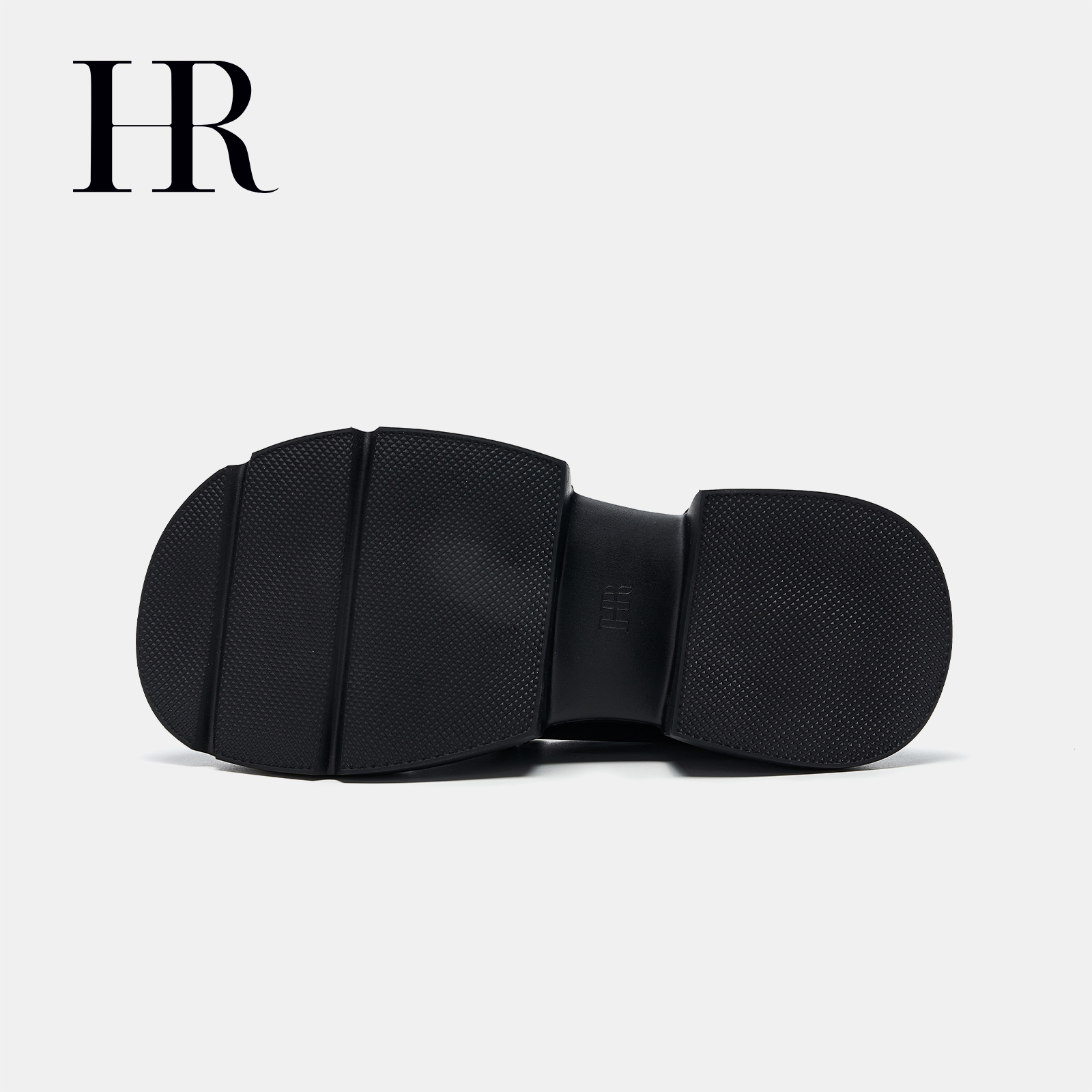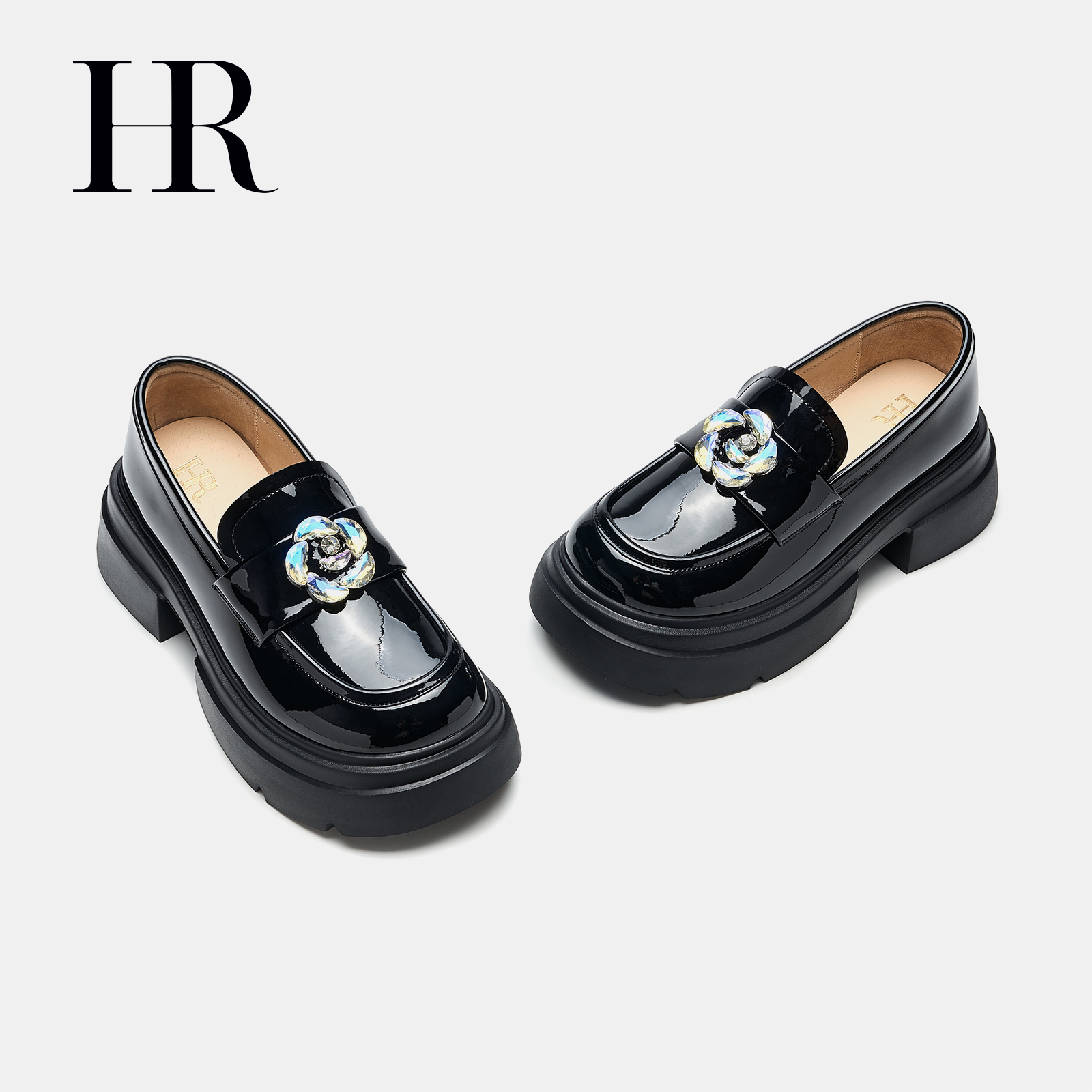 厚底水钻山茶花英伦风小皮鞋 HR赫莲娜女鞋 乐福鞋 新款 子2025年秋季