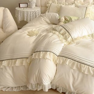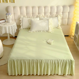 2025年新款 水洗棉fufu百褶蕾丝床裙四件套带花边柔软舒适纯色百搭