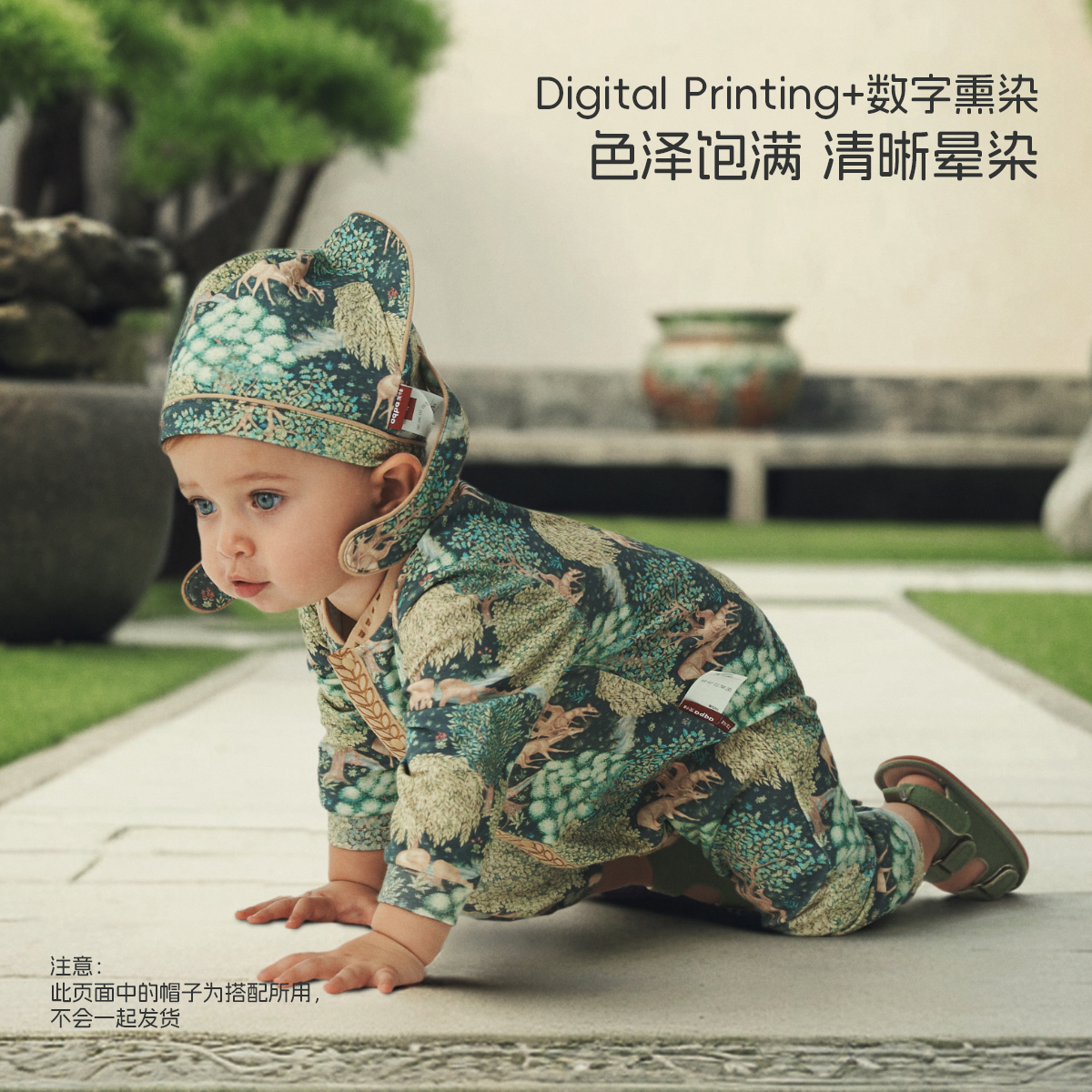 宝宝衣服外出服 aqpa国风汉服婴儿连体衣哈衣60S纯棉新款 鹿鸣溪