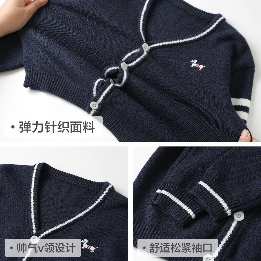 童装 新款 洋气儿童上衣女童毛衣外套 休闲学院春季 右欧男童针织开衫