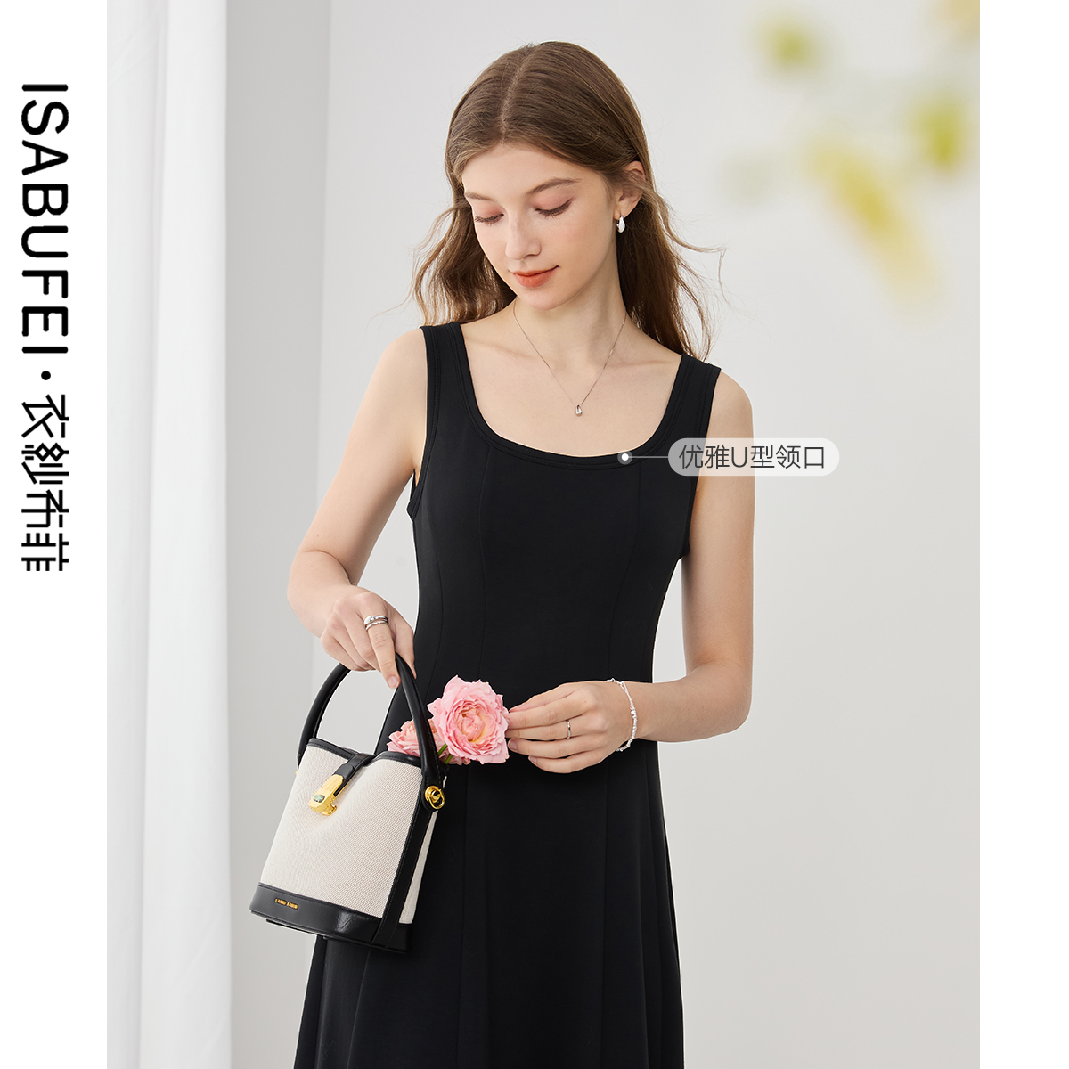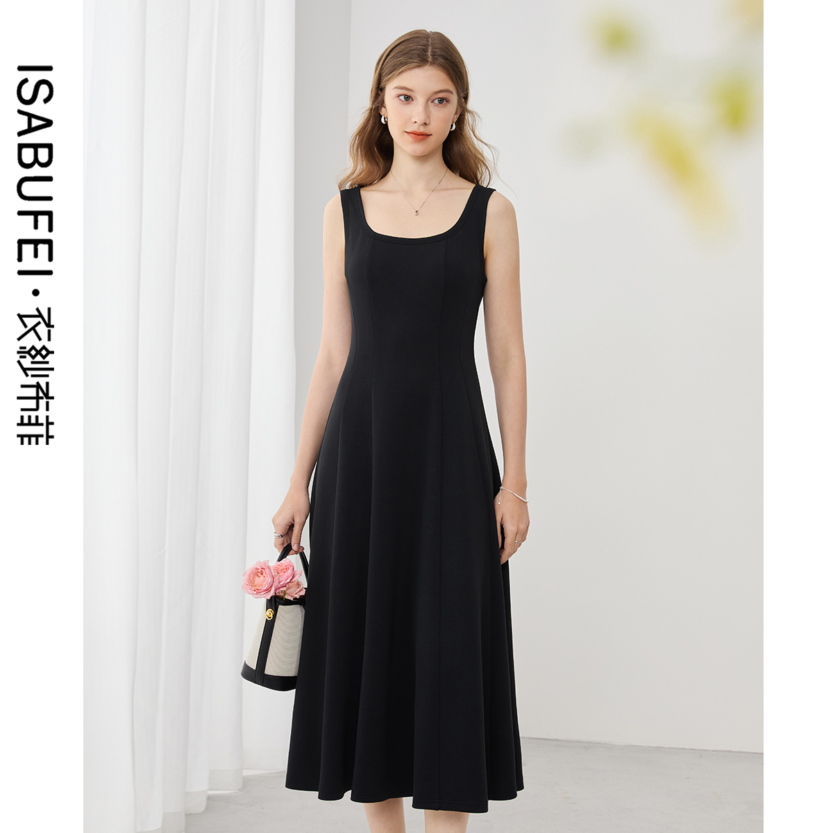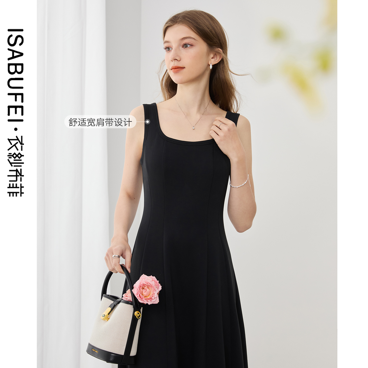 高级感内搭小黑裙 连衣裙女神大码 超长款 黑色吊带背心裙打底裙无袖