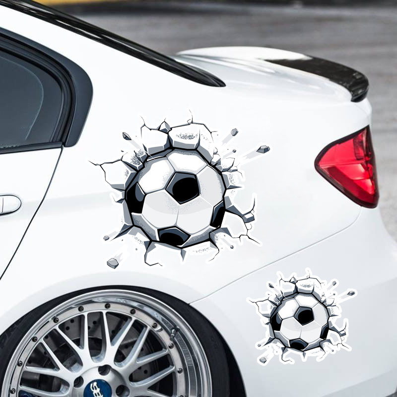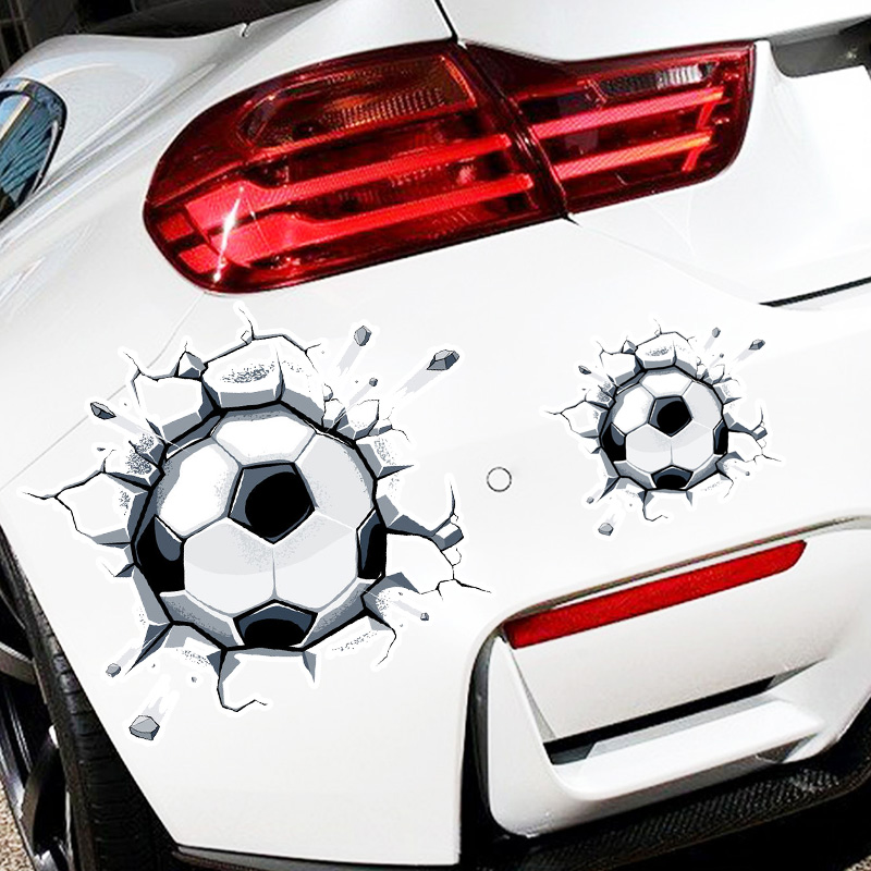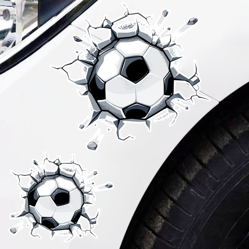 破墙足球创意搞怪创意电动车装 车贴 饰贴纸防水划痕遮挡个性