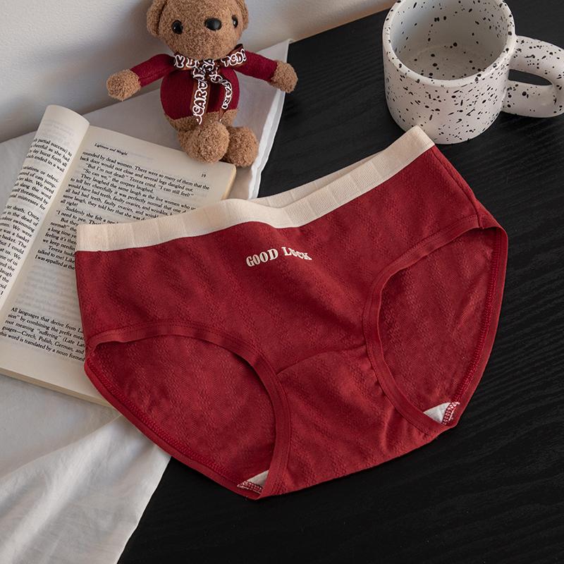 女生纯棉7A抗菌全棉裆中腰结婚红色三角裤 本命年内裤 安可拉红