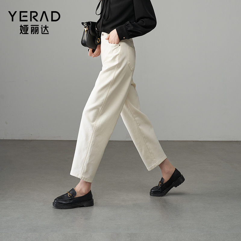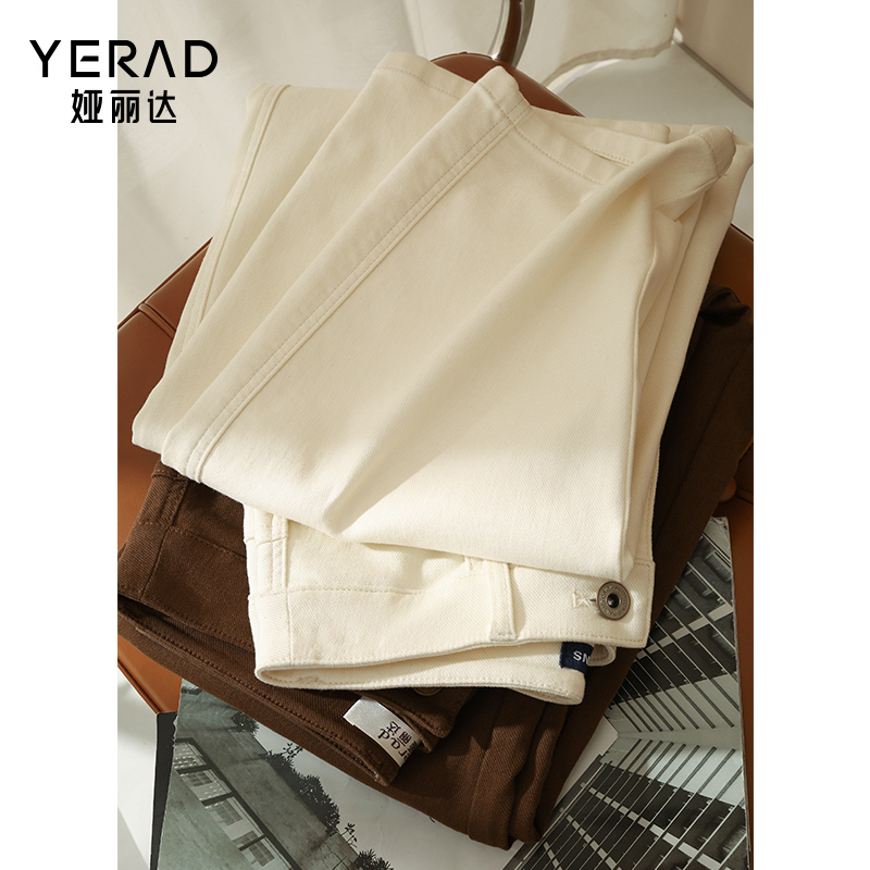 复古高腰宽松显瘦显高阔腿长裤 逸阳窄版 新款 女2025秋季 直筒牛仔裤