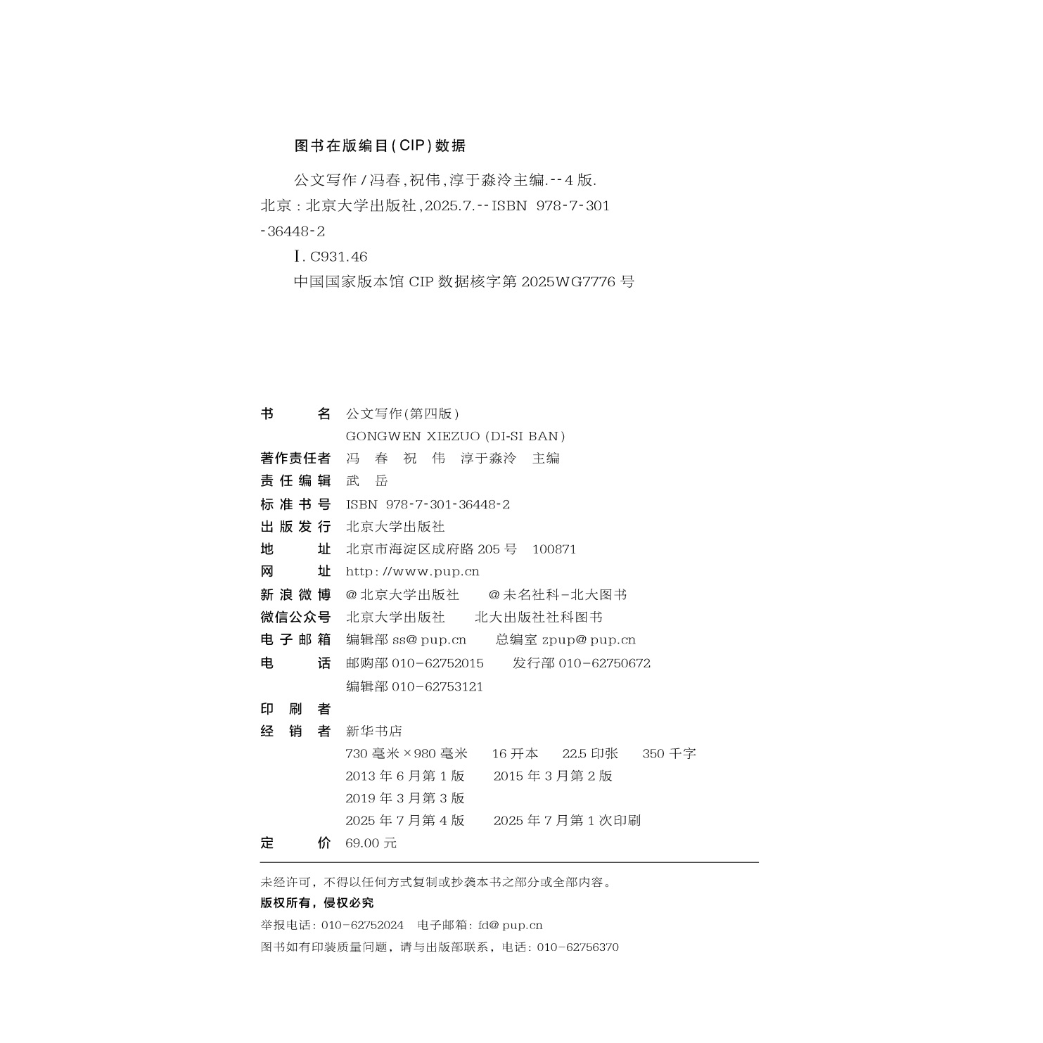 祝伟 冯春 淳于淼泠 北京大学出版 9787301364482 公文写作 社 第四版